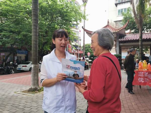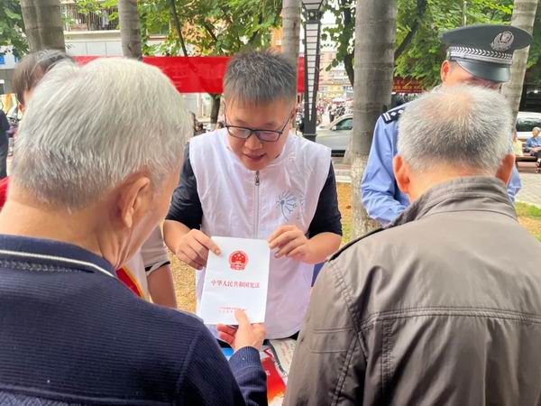 “阿姨,您好,最近電信網絡詐騙高發,這幾類生活中常見的詐騙伎倆請一定要提高警惕,不輕信、不轉賬、不匯款,守好咱們的錢袋子。”在法律知識競猜現場,“蒲公英”普法志愿者手把手幫助社區老年人安裝“國家反詐中心”APP。