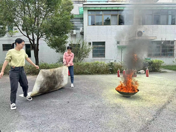 培訓中,培訓老師詳細介紹了消防水帶、滅火毯和干粉滅火器的功能用途,并現場操作示范正確的使用方法。隨后,教職工在老師指導下,進行了消防水帶、滅火毯、滅火器等實操。