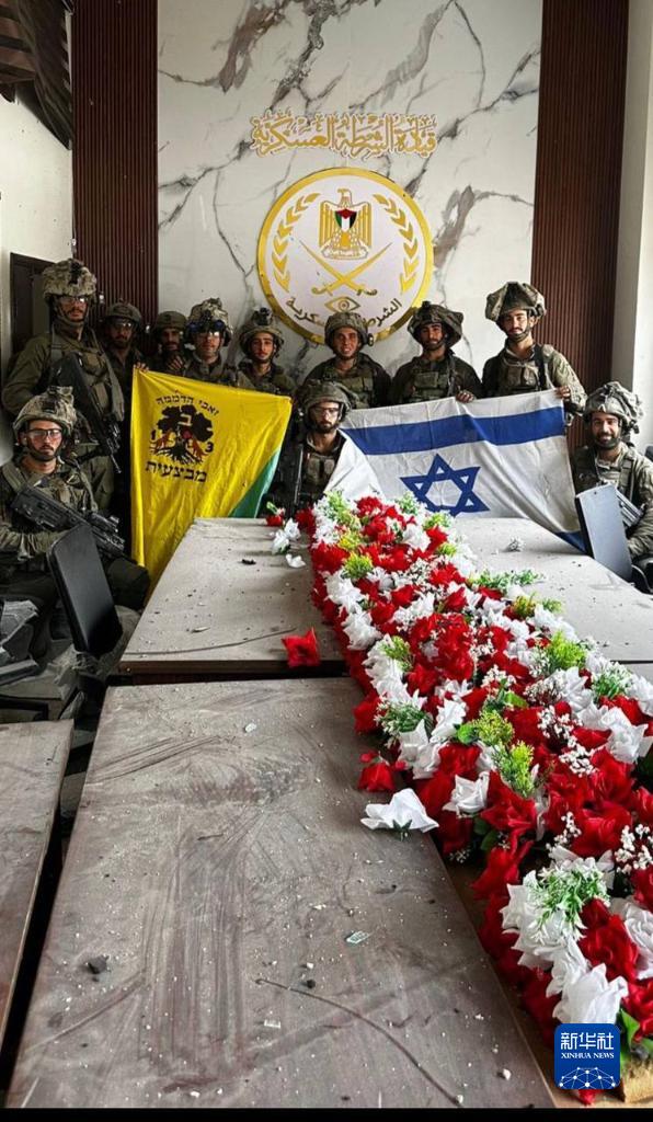 這張以色列媒體11月14日刊發(fā)的照片顯示,以色列國防軍士兵在加沙城巴勒斯坦伊斯蘭抵抗運動(哈馬斯)憲兵總部舉著以色列國旗。新華社發(fā) 新華社耶路撒冷11月14日電(記者呂迎旭 王卓倫)據(jù)《以色列時報》14日報道,以色列國防軍當天控制了巴勒斯坦伊斯蘭抵抗運動(哈馬斯)位于加沙城的憲兵總部。 報道援引了以軍發(fā)布的一張照片,照片顯示多名以軍士兵在憲兵總部舉著以色列國旗。報道說軍方?jīng)]有標明照片的拍攝時間。 以軍13日宣布控制加沙城內(nèi)的哈馬斯立法委員會大樓。 以軍14日表示,將繼續(xù)在加沙地帶北部實施“人道主義休戰(zhàn)”,以便巴勒斯坦民眾能夠向南部撤離。 以軍14日發(fā)表聲明說,以戰(zhàn)機在過去24小時內(nèi)轟炸約200個哈馬斯的目標,包括武器生產(chǎn)基地、反坦克導彈發(fā)射架和軍事指揮部等。以海軍13日夜襲擊了哈馬斯一個用于訓練和儲存武器的營地。 |
