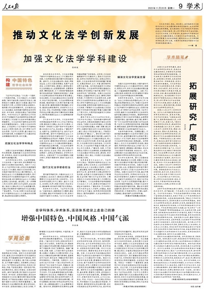 《 人民日報 》( 2023年11月20日09版) 文化關(guān)乎國本、國運。新征程上,擔負起新的文化使命對社會主義法治建設(shè)提出新的更高要求,也為法學(xué)研究提出新的課題。我們要堅持以習(xí)近平新時代中國特色社會主義思想為指導(dǎo),深入學(xué)習(xí)貫徹習(xí)近平法治思想、習(xí)近平文化思想,立足中國實際,適應(yīng)新時代中國特色社會主義文化建設(shè)新要求,大力推動文化法學(xué)創(chuàng)新發(fā)展。文化法學(xué)要著力為在法治軌道上建設(shè)社會主義文化強國提供學(xué)理支持、學(xué)術(shù)支撐。本期學(xué)術(shù)版圍繞如何推動文化法學(xué)創(chuàng)新發(fā)展進行探討。 ——編 者 加強文化法學(xué)學(xué)科建設(shè)(構(gòu)建中國特色哲學(xué)社會科學(xué)) 張樹庭 習(xí)近平總書記指出:“文化是一個國家、一個民族的靈魂。文化興國運興,文化強民族強。”新時代新征程,在新的歷史起點上繼續(xù)推動文化繁榮、建設(shè)文化強國、建設(shè)中華民族現(xiàn)代文明,必須更好發(fā)揮法治固根本、穩(wěn)預(yù)期、利長遠的保障作用。這對推進社會主義法治建設(shè)、加快構(gòu)建中國特色法學(xué)學(xué)科體系、學(xué)術(shù)體系、話語體系提出了新的更高要求。中共中央辦公廳、國務(wù)院辦公廳印發(fā)的《關(guān)于加強新時代法學(xué)教育和法學(xué)理論研究的意見》,對加強文化法學(xué)學(xué)科建設(shè)提出明確要求。文化法學(xué)是中國特色法學(xué)學(xué)科體系的重要組成部分。加強文化法學(xué)學(xué)科建設(shè),必須堅持以習(xí)近平新時代中國特色社會主義思想為指導(dǎo),深入學(xué)習(xí)貫徹習(xí)近平法治思想、習(xí)近平文化思想,著力推動文化法學(xué)創(chuàng)新發(fā)展,為加強新時代文化建設(shè)的法治保障提供學(xué)理支持、學(xué)術(shù)支撐。 把握文化法學(xué)學(xué)科特點 加強文化法學(xué)學(xué)科建設(shè),要遵循法學(xué)學(xué)科發(fā)展規(guī)律,準確把握文化法學(xué)的學(xué)科性質(zhì)、學(xué)科特點,促進文化法學(xué)理論研究和實踐研究高質(zhì)量發(fā)展。 時代孕育的新興學(xué)科。從全球范圍看,文化法學(xué)是一門新興學(xué)科,其發(fā)展程度與各國的文化發(fā)展狀況密切相關(guān)。黨的十八大以來,以習(xí)近平同志為核心的黨中央高度重視社會主義文化建設(shè),推進文化自信自強,為扎實推進中國式現(xiàn)代化注入強大精神動力。在推進社會主義文化強國建設(shè)的進程中,我們黨把法治作為治國理政的基本方式,堅持全面依法治國,將中國特色社會主義文化建設(shè)全面納入法治軌道。新征程上,進一步保障人民文化權(quán)利,規(guī)范文化行業(yè)秩序,在法治軌道上推動文化事業(yè)和文化產(chǎn)業(yè)高質(zhì)量發(fā)展,對建立和發(fā)展具有中國特色的文化法學(xué)提出了緊迫要求。可以說,發(fā)展文化法學(xué)適應(yīng)新時代中國特色社會主義文化建設(shè)的實際需要,是全面依法治國的必然要求。 面向?qū)嵺`的應(yīng)用學(xué)科。文化法學(xué)根植于新時代中國特色社會主義文化建設(shè)偉大實踐,又在積極回答實踐問題中實現(xiàn)創(chuàng)新發(fā)展。新時代,文化法治建設(shè)深入推進,網(wǎng)絡(luò)安全法、公共文化服務(wù)保障法、電影產(chǎn)業(yè)促進法、公共圖書館法、愛國主義教育法等文化立法相繼出臺,出版管理條例、志愿服務(wù)條例、博物館條例、水下文物保護管理條例等行政法規(guī)和部門規(guī)章紛紛制定修訂,我國文化法律法規(guī)體系和政策體系更加健全。但也應(yīng)看到,文化法治建設(shè)還存在立法有盲點、執(zhí)法不到位等問題。文化法學(xué)要服務(wù)國家戰(zhàn)略,圍繞我國文化發(fā)展方面的重大規(guī)劃、重點改革、重要舉措等開展前瞻性、針對性、儲備性法律政策研究,系統(tǒng)研究文化立法、執(zhí)法、司法、守法等領(lǐng)域人民群眾反映強烈的突出問題,提出具有可操作性的對策建議,更好服務(wù)鑄就社會主義文化新輝煌的嶄新實踐。 多元復(fù)合的交叉學(xué)科。文化法學(xué)的研究范圍涵蓋宣傳思想文化工作各方面和全過程,既包括文化事業(yè),如公共文化服務(wù)、文物保護、非物質(zhì)文化遺產(chǎn)保護中的法律問題;也包括文化產(chǎn)業(yè),如出版業(yè)、廣播電視產(chǎn)業(yè)、電影產(chǎn)業(yè)、互聯(lián)網(wǎng)內(nèi)容產(chǎn)業(yè)、音樂產(chǎn)業(yè)中的法律問題。新時代中國特色社會主義文化建設(shè)的多樣性和豐富性決定了文化法學(xué)研究需要綜合運用法學(xué)、傳播學(xué)、藝術(shù)學(xué)、政治學(xué)、經(jīng)濟學(xué)、管理學(xué)等多學(xué)科知識,在把握中國特色社會主義文化建設(shè)規(guī)律的基礎(chǔ)上研究解決相應(yīng)法律問題。文化法學(xué)突破傳統(tǒng)部門法的研究疆域,貫通憲法、行政法、民商法、經(jīng)濟法、社會法、刑法、訴訟法等多個法律部門,呈現(xiàn)出多領(lǐng)域綜合、多學(xué)科交叉的特點。這就決定了文化法學(xué)需要以問題為牽引,積極開展跨學(xué)科、跨部門法的交叉研究。 踐行文化法學(xué)使命擔當 面對新形勢新任務(wù),為建設(shè)社會主義文化強國注入