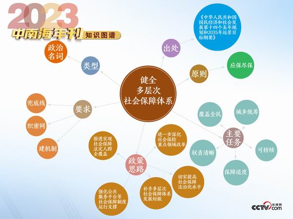 觀察央視網I學習數據庫生成的知識圖譜,“多層次社會保障體系”更加可感可知。通過細數這些惠及千家萬戶的民生“成績單”,更能深刻理解在高質量發展中促進共同富裕的內在邏輯和實現路徑: ——看就業。 2023年以來,各級政府直接支持就業創業資金超過2000億元。1—11月,全國城鎮新增就業1180萬人,全國城鎮調查失業率均值為5.2%,比上年同期低0.4個百分點,就業形勢總體平穩。多地還運用信息化手段,建立就業檔案,提升服務精準度。 ——看住房。 從“住有所居”到“住有宜居”,各項投入不斷加大。2023年,全國籌集建設保障性租賃住房已完成約200萬套(間),解決新市民和青年人的階段性住房困難。保障性住房建設、“平急兩用”公共基礎設施建設、城中村改造等“三大工程”建設正有序推進,截至2023年11月底,全國城中村改造入庫項目406個,預計總投資1.8萬億元。 ——看醫療。 2023年11月6日,第九批國家組織藥品集中帶量采購開標,并產生擬中選結果:41種藥品采購成功,擬中選藥品平均降價58%,預計每年可節約藥費182億元。至此,國家組織藥品集采已經覆蓋374種藥品,為患者減輕用藥負擔。2023年,新增126種藥品進入國家醫保藥品目錄,談判藥品數量為歷年來最多,談判成功的藥品平均降價61.7%。城鄉居民基本醫療保險人均財政補助標準提高30元,達到每人每年640元;基本公共衛生服務經費人均財政補助標準提高5元,達到每人每年89元。截至2023年6月底,全國36個先行城市(地區)開立個人養老金賬戶人數已超過4000萬人,相比去年底增長超過一倍。 ——看教育。 相比2022年,2023年全國一般公共預算安排教育支出42166億元,增長6.9%。1—11月,全國一般公共預算支出中的教育支出同比增長5.7%。2023年8月,教育部等部門聯合印發《關于實施新時代基礎教育擴優提質行動計劃的意見》,聚焦人民群眾從“有學上”到“上好學”的美好期盼,辦好更加公平、更高質量的基礎教育。 堅持基本民生投入只增不減、惠民力度只強不弱、惠民實事只多不少——一份份書寫百姓福祉的民生答卷,綿綿用力、久久為功。