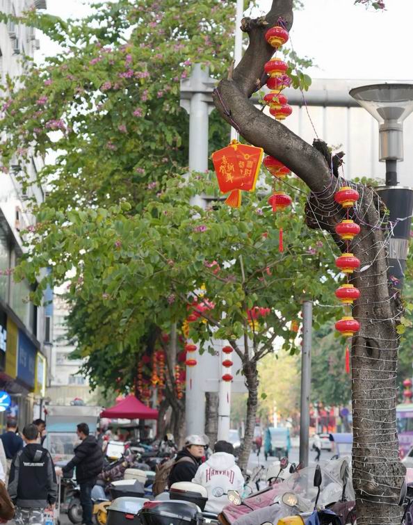 路燈下、商鋪外、街道旁……放眼望去,一盞盞紅燈籠串珠成鏈,將三元裝飾一新,喜慶的造型、靚麗的風景,處處洋溢著喜慶祥和的節(jié)日氛圍。