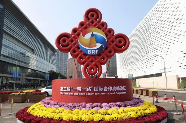 這是2023年10月17日在北京國家會議中心附近拍攝的“一帶一路”國際合作高峰論壇景觀布置。新華社記者 陳斌 攝 埃及前總理沙拉夫說,習近平主席提出的共建“一帶一路”倡議和三大全球倡議,為世界提供了重要公共產品。當這些倡議被追求和平與發展的人們所接受時,一條通向共同繁榮的道路就出現了。