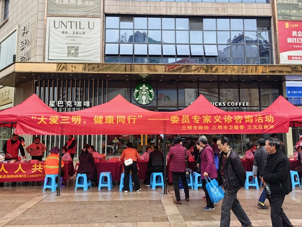 3月16日上午,三元區政協聯合市政協、市衛健委在列東街和騰飛廣場同時舉辦“大愛三明 健康同行”委員專家義診咨詢活動,推動健康服務深入基層,提高居民健康意識和生活質量。市政協副主席黃月珍,區政協副主席張銘參加活動。