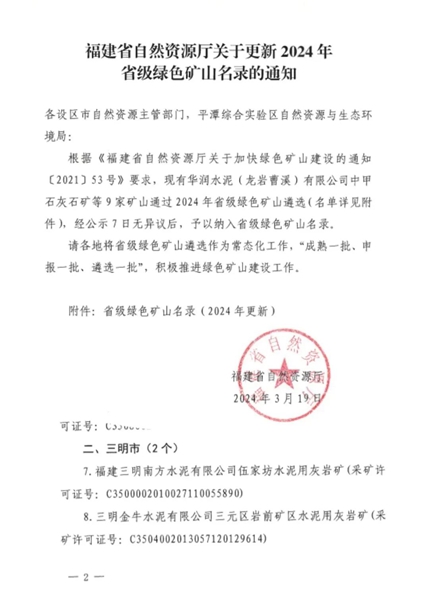 3月19日,金牛水泥有限公司三元區巖前礦區水泥用灰巖礦順利通過2024年省級綠色礦山遴選,正式納入省級綠色礦山名錄。