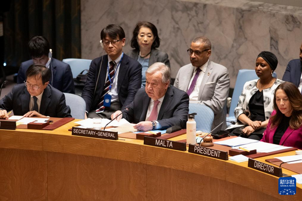 4月14日,在位于紐約的聯合國總部,聯合國安理會就伊朗襲擊以色列舉行緊急會議。新華社記者 謝鍔 攝 古特雷斯說,中東地區面臨全面沖突的風險。現在是緩和降級、保持最大限度克制的時候了。《聯合國憲章》禁止以武力侵害任何國家的領土完整或政治獨立,同時外交館舍與外交人員不可侵犯的國際法原則必須得到尊重。 古特雷斯敦促各方避免采取可能引發大規模軍事沖突的任何行動。他說,國際社會有共同責任與有關各方積極接觸,避免局勢進一步升級,謀求在加沙地帶立即實現人道主義停火,爭取被扣押人員獲釋,保證人道救援順利進行。國際社會有共同責任停止約旦河西岸的暴力,緩和以色列與黎巴嫩邊境緊張局勢,重新確立紅海的航行安全。