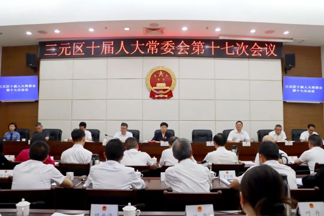 4月25日,三元區十屆人大常委會召開第十七次會議,區人大常委會主任林翠玲,副主任范其鑒、周金濤、蘇奕泰及其他組成人員出席會議,區人民政府副區長田富遠、區人民法院院長黃偉、區人民檢察院檢察長劉文婷、區監察委員會負責人列席會議。區人大常委會副主任蘇奕泰主持會議。