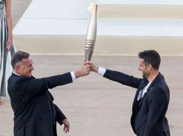 4月26日,希臘奧委會主席卡普拉洛斯(左)將火炬交給巴黎奧組委主席埃斯坦蓋。新華社發(馬里奧斯·羅洛斯攝) 據法國內政部消息,5月8日當天,法國將部署約6000名警察在馬賽活動現場以加強安保。預計將有超過15萬人來到港口迎接奧運火種抵達。隨后,火炬將開始為期兩個多月的法國境內和越洋傳遞。 巴黎奧運會將于7月26日至8月11日舉行,殘奧會將于8月28日至9月8日舉行。 |