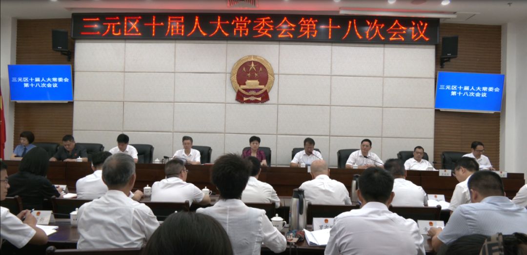 6月26日,三元區十屆人大常委會召開第十八次會議,區人大常委會主任林翠玲,副主任羅裕明、范其鑒、周金濤、蘇奕泰及其他組成人員出席會議,區人民政府副區長肖方杰、田富遠,區人民法院院長黃偉,區人民檢察院檢察長劉文婷,區監察委員會負責人,區政府辦負責人,部分鄉鎮人大主席團、街道人大工委負責人列席會議。區人大常委會副主任羅裕明主持會議。