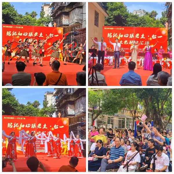 三、舉辦文藝展演,傳唱經典展風采 為傳承和弘揚紅色文化,深入推進黨紀學習教育,結合“我們的中國夢——文化進萬家”主題,6月28日,白沙社區黨委組織開展“銘記初心跟黨走·七一”文藝聯歡匯演,在表演中回顧黨的光輝歷程,在音樂里謳歌黨的豐功偉績。此次活動,既是對黨的生日的深情獻禮,也是一次生動的黨課教育,進一步激發了社區居民愛黨愛國熱情,營造了充滿正能量的社區文化氛圍。