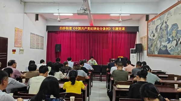 為深入學習貫徹習近平新時代中國特色社會主義思想,深化拓展“三爭”行動,推動“四領一促”工作,慶祝中國共產黨成立103周年,引導廣大黨員弘揚黨的優良傳統,傳承偉大建黨精神,為新中國成立75周年增添氛圍,白沙街道各級黨組織積極開展迎“七一”系列主題黨日活動。 一、講好專題黨課,思想引領凝共識 為深化黨紀學習教育,進一步增強黨員干部認真學紀、全面知紀、對標明紀、篤行守紀的意識,6月27日下午,白沙街道黨工委書記張高峰以《以案明紀、以紀正行切實提升遵規守紀的高度自覺》為主題,為30余名街居黨員干部講授《中國共產黨紀律處分條例》重點內容,引導全體黨員干部堅定跟黨走的信念與使命,切實將黨紀學習教育成果轉化為忠誠干凈擔當的具體行動。