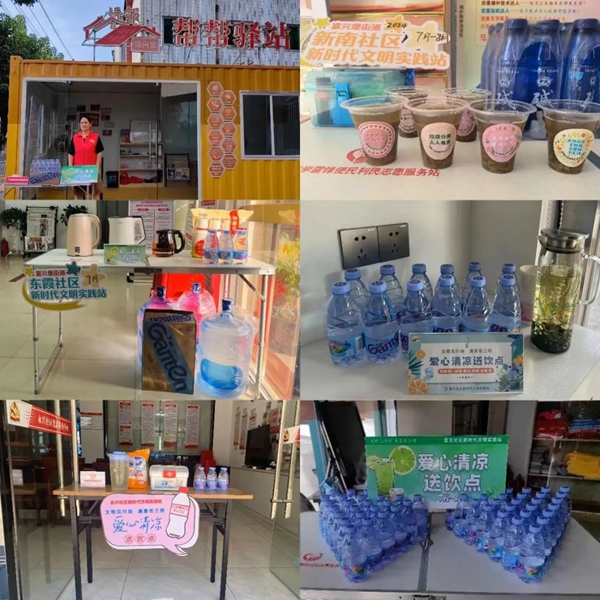 在各社區新時代文明實踐站、幫幫驛站等地設置愛心“清涼點”6處。組織開展“小手送清涼”“近鄰沁人心”等文明志愿活動,向周邊交警、環衛工人等戶外勞動者免費發放綠豆湯、礦泉水等,目前已發放各類飲品200余份。