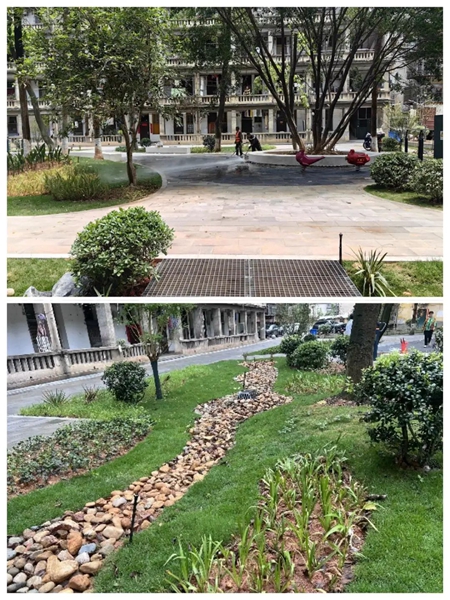 項目建成后,既解決了群二市場周邊長期以來存在的積水和內澇等問題,又滿足了小區居民休閑娛樂的需求,使其成為集休閑、健身、交流、游憩于一體的“網紅小區”,有效聚集人氣,帶動周邊三產繁榮,促進社區三產經濟良性循環持續發展,實現海綿景觀的生態、社會和經濟效益的共贏。