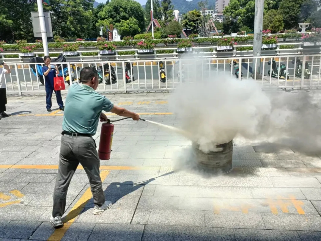 演練結束后,消防救援大隊向市民講解了配備滅火器與過濾式消防自救呼吸器的重要性,并現場演示了如何使用滅火器和佩戴過濾式消防自救呼吸器,邀請市民親身體驗滅火過程。