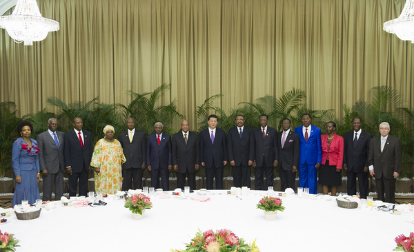 圖為2013年3月28日,國家主席習近平在南非德班同非洲國家領導人早餐會合影。新華社發 早餐會的暢談 2013年3月,南非德班,北方海灘飯店,中國代表團駐地。正在非洲訪問的習近平主席邀請非洲國家領導人,在這里舉行一場非同尋常的早餐會。 鋪著潔白桌布的大圓桌,布置得簡潔、典雅。14位非洲貴客一一落座。壽桃包、春卷……一道道菜肴擺上餐桌。 此時,習近平擔任國家主席后首次對非洲的訪問已經進入第五天。“聽聽非洲國家對發展中非關系的想法”,早餐會一開始,習近平主席就開宗明義,說明了舉行這場早餐會的初衷。 在座的非洲國家領導人紛紛回憶起各國同中國人民的友誼。 時任南非總統祖馬說:“在我們爭取民族獨立和自由的時候,就同中國人民并肩作戰。”烏干達總統穆塞韋尼說:“中國一直堅定反對殖民主義,中國在歷史上和非洲一直同屬一個世界。”時任莫桑比克總統格布扎說:“中國真心幫助非洲走出貧困。”…… 對于習近平主席來說,非洲這片希望大陸熟悉而親切,他年輕時就熟知中非友好事業。 “中非是休戚與共的命運共同體。歷史反復證明,中國發展好了,非洲發展會更順;非洲發展順了,中國發展會更好。”習近平主席一言點明中非關系的真諦。 前一天結束的金磚國家領導人同非洲國家領導人對話會,議題是“釋放非洲潛力:金磚國家和非洲在基礎設施領域的合作”。 早餐會上,不少非洲國家領導人繼續了這一話題。習近平一邊仔細傾聽,一邊認真記著。 人員培訓、技術合作、金融投資……在一個個合作領域,非洲國家領導人渴望學習中國經驗、獲得中國支持。 習近平主席回應道,中國政府將積極采取措施,鼓勵中國企業擴大對非投資,特別是農業和制造業,基礎設施建設等領域的投資,將繼續要求中國企業積極履行社會責任,更加注重技術轉讓、人員培訓、經驗共享。 圍繞和平、一體化、平等參與國際事務等議題,習近平主席與大家敞開心扉暢談。 “今天我們大家共聚一堂,有一個共同的理念和意愿,那就是非洲需要中國,正如中國需要非洲。”時任貝寧總統亞伊的一席話,道出了非洲的共同心聲。 早餐會結束的時間到了,人們還有很多話要說。 “中非關系發展沒有完成時,只有進行時。”習近平主席意味深長地說,“我們愿同非洲國家一道努力,不斷認清新形勢新任務,不斷開辟新方式新途徑,不斷解決新矛盾新問題,推動中非關系向更高層次、更廣領域發展”。