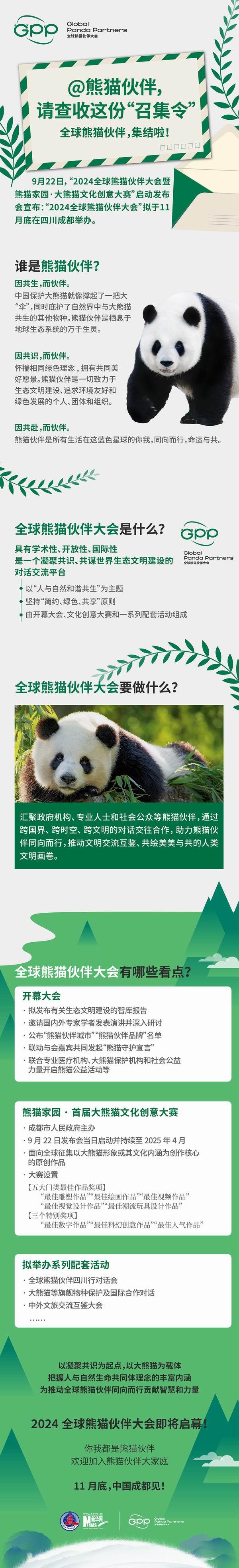 全球熊貓伙伴,集結啦!9月22日,“2024全球熊貓伙伴大會暨熊貓家園·大熊貓文化創(chuàng)意大賽”啟動發(fā)布會宣布:“2024全球熊貓伙伴大會”擬于11月底在四川成都舉辦。誰是熊貓伙伴?什么是全球熊貓伙伴大會?一圖帶你了解。?