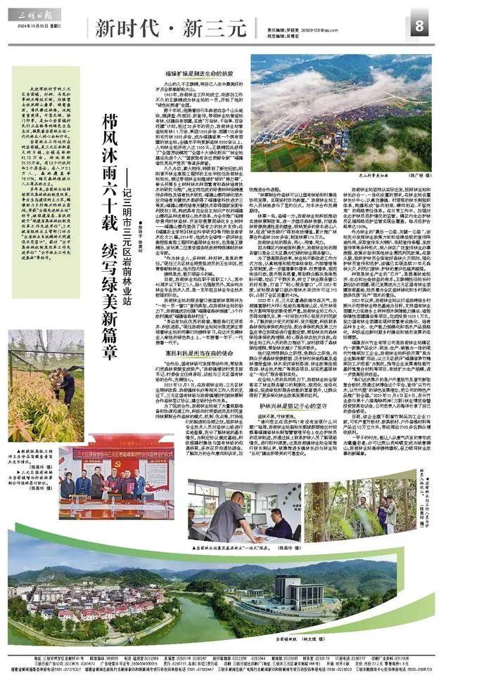 巖前林業站工作人員與護林員入林巡山。(陳美玲 攝) 巖前林業站堅持從實際出發,按照林業站和林長辦合一、一體化設置的要求,在林業站設置林長分中心,認真完善鎮、村層級的林長制組織體系,構建形成“縱向到底、橫向到邊、不留死角”的網格責任體系。在日常工作中,加強對生態護林員巡護情況的監管,轄區內生態護林員區域網格巡護監管實現全覆蓋,每月巡護合格率達100%。 作為林業的“最后一公里、關鍵一公里 ”,該站充分發揮林業政策方針和法律法規的宣傳陣地作用,采取宣傳車大喇叭、張貼宣傳條幅、發放宣傳單等多種形式,深入林區廣泛宣傳林業辦事流程、政策補助和其他林業惠民利民政策。在禁火期,組織護林員全面做好森林火災預防,強化護林員宣傳和巡護,該鎮已實現連續37年無森林火災,村民們愛林、護林的意識也越來越強。 種苗是林業產業的“芯片”,是提高林地經濟、生態和社會效益的根本。王源楠擔任站長時期創辦的苗圃,現已發展成為三元區國有林業苗圃巖前基地,擔負著為全區造林綠化和鄉村美化提供優質“自產”苗木的重任。 2023年以來,巖前林業站以打造巖栲線鄉村振興示范帶林業特色基地為目標,支持國有林業苗圃大力實施鄉土樹種苗木保障能力建設、省級保障性苗圃建設等項目,完成投資1628.1萬元,助力國有林業苗圃實現種苗繁育設施化、培育品種鄉土化、生產能力規模化和苗木產品規格化,積極適應新時期鄉村建設和城市發展的實際需要。 福建吉興竹業有限公司是巖前林業站轄區內一家集產品設計、研發、生產、銷售為一體的現代竹精深加工企業。巖前林業站積極開展“我為企業解難題”活動,以三元區獲評“福建省筍竹精深加工示范縣”為契機,指導企業發展高性能竹基纖維復合材料等項目,有效擴大生產規模,進一步提高經濟效益。 “我們這次展示的是戶外重組竹及普竹新型復合板材,想通過林博會這個平臺,宣傳‘以竹代木,以竹代塑’的綠色發展理念,把公司的特色產品推廣到全國。”2023年11月6日至9日,吉興竹業參與第十八屆海峽兩岸(三明)林業博覽會暨投資貿易洽談會,公司負責人蘇海洋分享了自己的參會感受。 目前,該企業旗下配套竹制品加工企業15家,可年產重竹板材、家具板材、戶外裝修材料等產品近10萬立方米,帶動周邊2500多名群眾增收獲利。