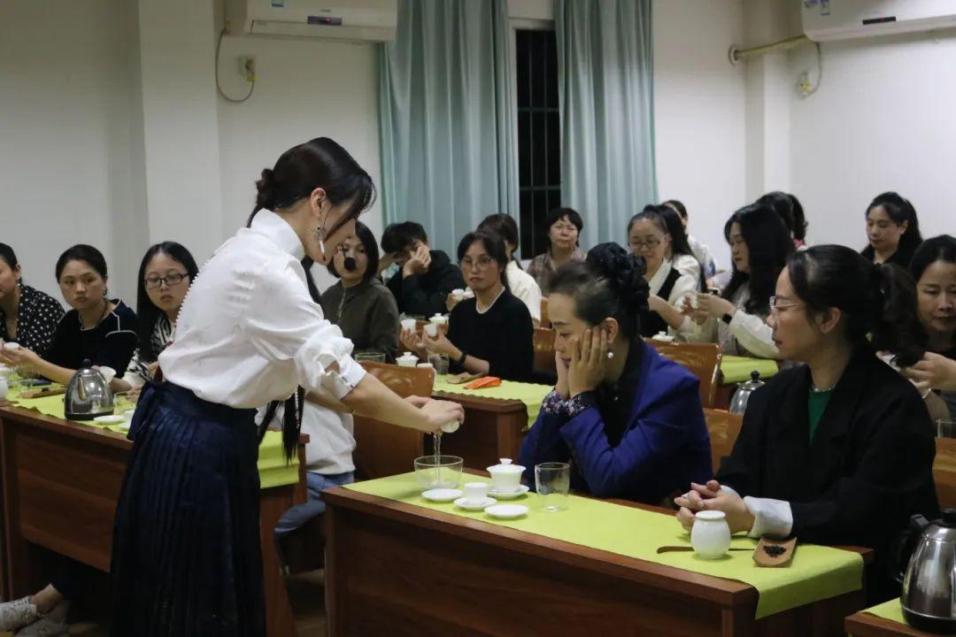 茶藝實操演練 課堂上,老師們不僅進行了生動詳細的講解,還通過現場示范教學,將理論與實踐緊密結合。在老師們的悉心指導下,職工們積極參與,親自動手實踐泡茶技藝,氛圍熱烈而溫馨。