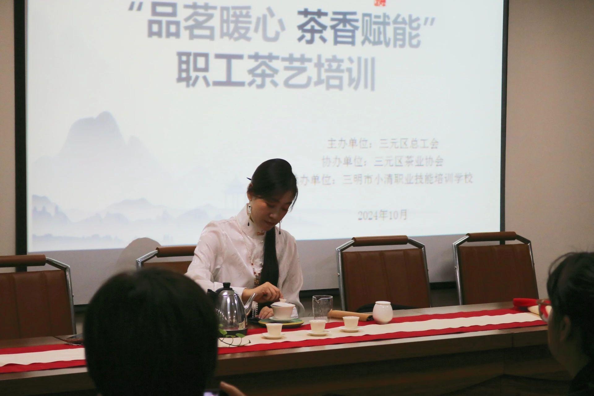 為更好滿足職工精神文化需求,進一步提升職工生活品質,助推三元茶產業發展,10月29日至11月12日,由三元區總工會主辦、三元區茶業協會協辦、三明市小清職業技能培訓學校承辦的“品茗暖心 茶香賦能”職工茶藝公益培訓在下洋職工服務中心舉辦。