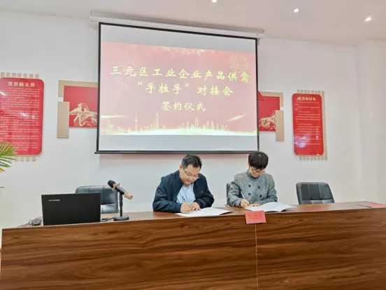 活動現場,徐碧街道向各企業代表介紹了全區工業經濟情況,并邀請福建三開電氣有限公司、三明鷺燕大藥房有限公司代表分別從公司的發展歷程、主要產品的特性優勢和市場情況等方面進行推介,表達了與更多企業建立合作關系的意愿。現場組織三明博峰生物科技有限公司、上海杰一生物技術有限公司、福建三開電氣有限公司、福建省三明市開關有限公司、廣東菲鵬生物有限公司等5家企業上臺簽訂供需合作協議,達成銷售意向6800萬元。