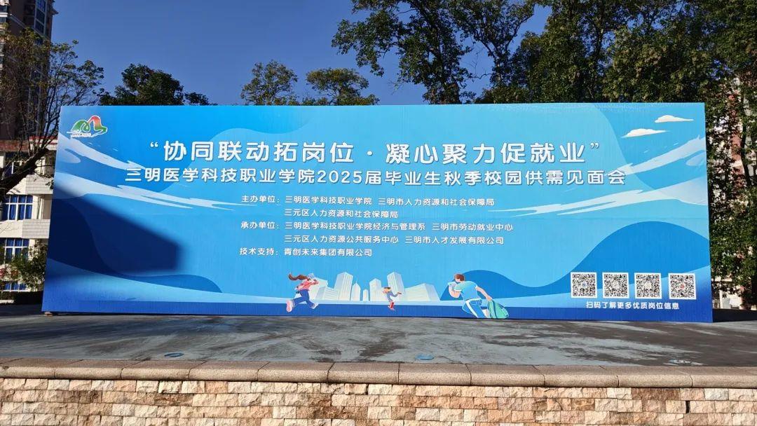 11月28日下午,由三明市人社局、三元區(qū)人社局主辦的“協(xié)同聯(lián)動(dòng)拓崗位 凝心聚力促就業(yè)”三明醫(yī)學(xué)科技職業(yè)學(xué)院2025屆畢業(yè)生秋季校園供需見面會(huì)在學(xué)院北區(qū)田徑場成功舉行。