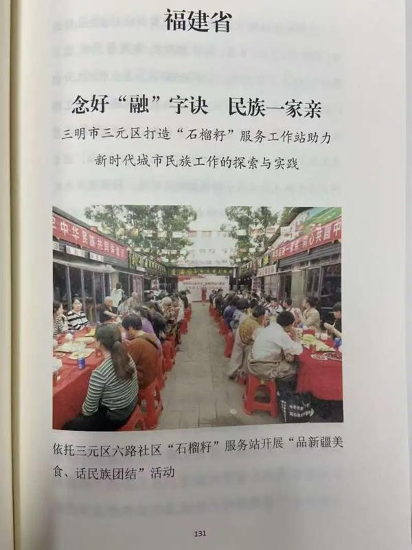 近期,區(qū)委統(tǒng)戰(zhàn)部(民宗局)報送的《念好“融”字訣 民族一家親——三明市三元區(qū)打造“石榴籽”服務(wù)工作站助力新時代城市民族工作的探索與實踐》作為福建省唯一案例,入選國家民委構(gòu)建互嵌式社會結(jié)構(gòu)和社會環(huán)境典型案例。