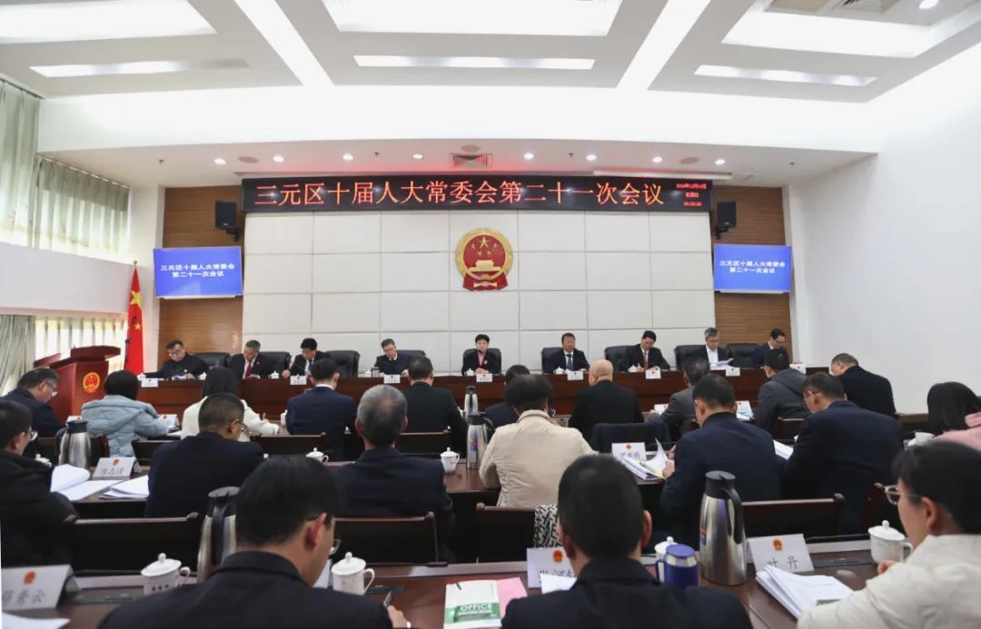 12月19日,三元區十屆人大常委會召開第二十一次會議。區人大常委會主任林翠玲,副主任羅裕明、范其鑒、周金濤、蘇奕泰及其他組成人員出席會議,區人民政府副區長張仁濤,區人民法院院長黃偉,區監察委員會負責人,區人民檢察院負責人,區政府辦負責人,部分鄉鎮人大主席團、街道人大工委負責人,區人大常委會機關副科級以上干部列席會議。蘇奕泰主持會議。
