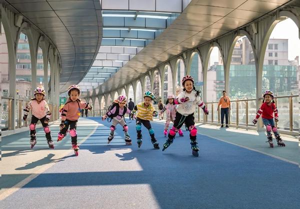 如意橋上開心玩輪滑的孩子(唐巧玲 攝)