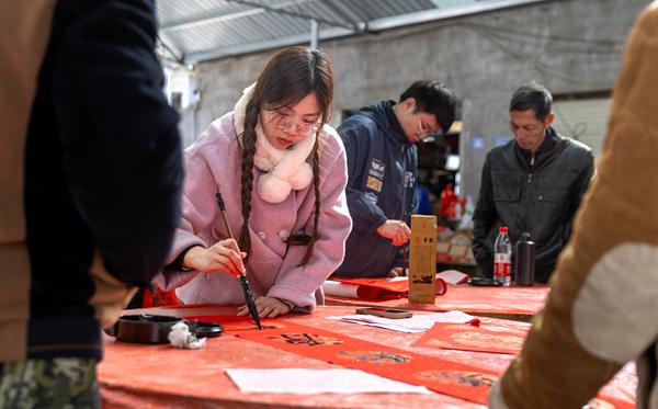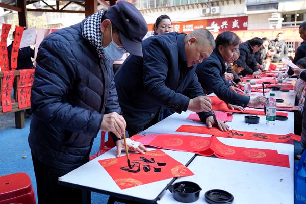 購置年貨的熱潮已然掀起 濃濃的年味撲面而來 春聯、福字、紅燈籠 五彩繽紛的零食 品種多樣的蔬菜、肉類、水果 歲末購置年貨 不僅是一場物質上的采買 更是市民對闔家團圓 幸福新年的深情奔赴 在家中擺一兩盆年花 成為了許多人的年貨必買清單之一 不少市民群眾 趁著冬日暖陽前去選購年花 祈求新的一年花開富貴 墨香迎新春揮毫書祝福 書法家們滿懷激情 書寫著描繪幸福美滿、蘊含吉祥寓意的春聯和“福”字 為大家送上新年的美好祝愿