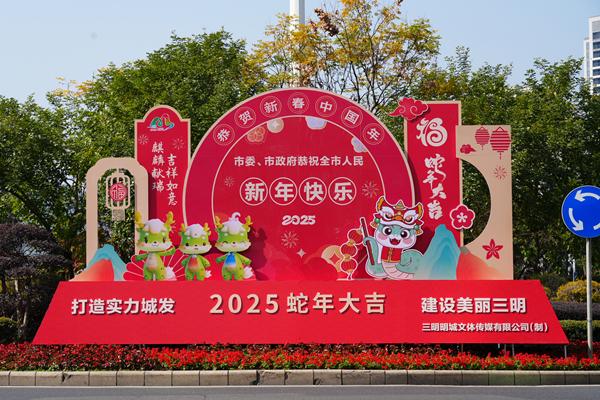 人間煙火處,年味正濃時。隨著蛇年春節的腳步日益臨近,三元區也披上了節日的盛裝,處處洋溢著喜慶、祥和的氣息。 紅彤彤的燈籠高高掛起 街道換上了“新年皮膚” 中國紅成了街道上最亮眼的底色 滿城流光溢彩 吉祥物明奇奇、明靈靈、明寶寶扮靚了城市容顏 濃濃年味彌漫在大街小巷