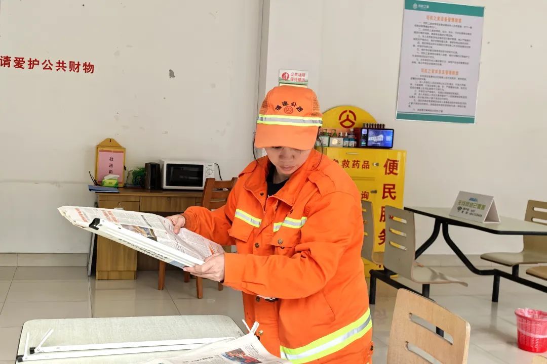 荊東公路站工人更換新報紙 走進(jìn)沙溪攬月停車區(qū),早早懸掛起的紅燈籠在冬日的寒風(fēng)中搖曳,公路人親手系上的這份隨風(fēng)飄揚的春節(jié)紅,寄托著三明市公路事業(yè)發(fā)展中心三元分中心對旅客美好的新年祝福,愿過往的每一位司乘人員在旅途中也能感受到家的溫暖。