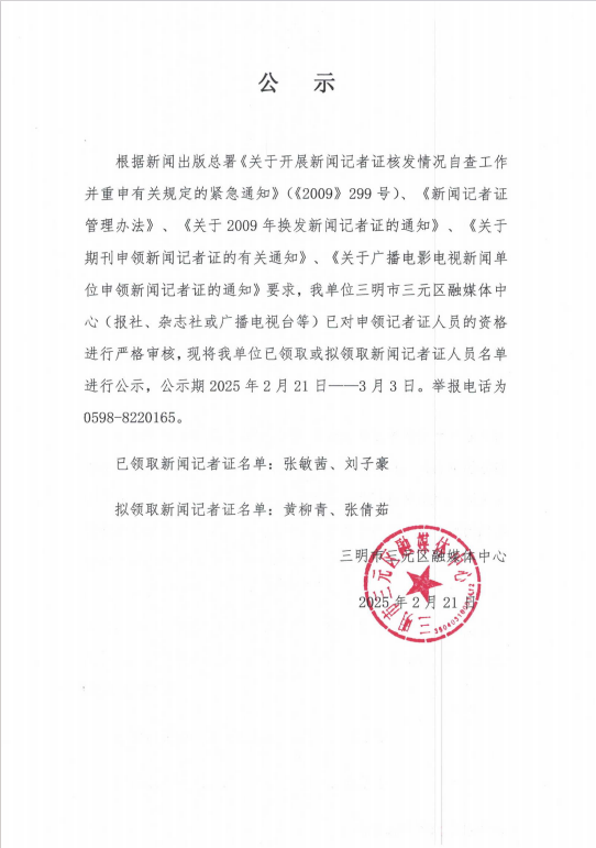 當前位置:首頁 > 三元新聞網 > 公示公告 >
