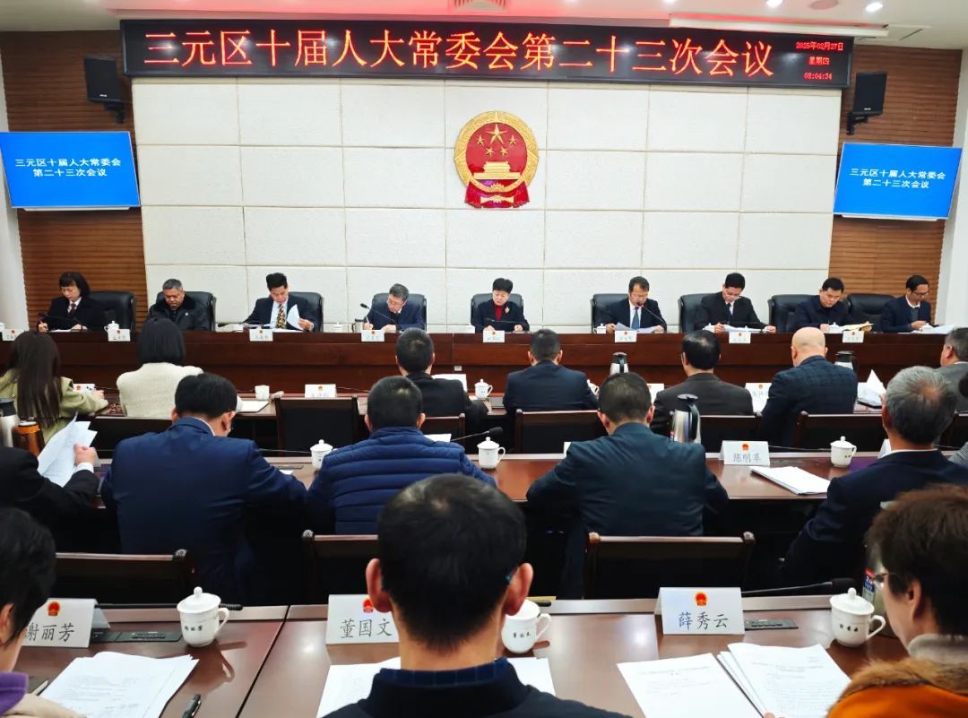 2月27日,三元區十屆人大常委會召開第二十三次會議。區人大常委會主任林翠玲,副主任羅裕明、范其鑒、周金濤、蘇奕泰及常委會其他組成人員出席會議,區政府副區長傅永強,區法院院長黃偉,區檢察院檢察長劉文婷,區監察委員會負責人,區政府辦負責人,部分鄉鎮人大主席團、街道人大工委負責人,部分區人大代表,區人大常委會機關副科級以上干部列席會議。羅裕明主持會議。
