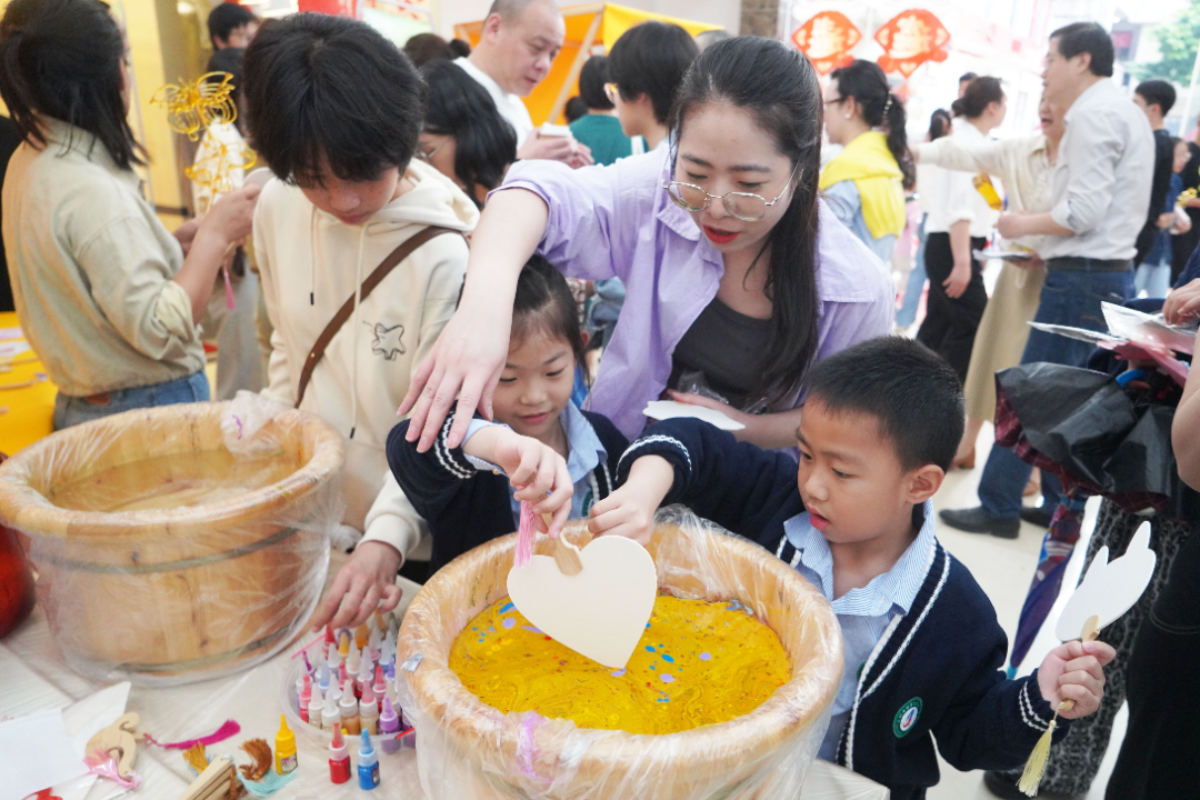 巡展區(qū)域更是人氣火爆,鄉(xiāng)村振興主題書展展示基層文化成果,“以書換糧”公益行動(dòng)吸引市民捐贈(zèng)閑置圖書換取大米……非遺體驗(yàn)區(qū)中,家長與孩子共同制作拓染書簽、漆扇和糖畫,感受傳統(tǒng)技藝的魅力。“此次活動(dòng)意義非凡,對(duì)孩子們來說收獲滿滿,不僅能感受閱讀的樂趣,還能近距離接觸到豐富的非遺文化,拓寬了視野。”帶著孩子參加活動(dòng)的市民黃美玲開心地表示。
