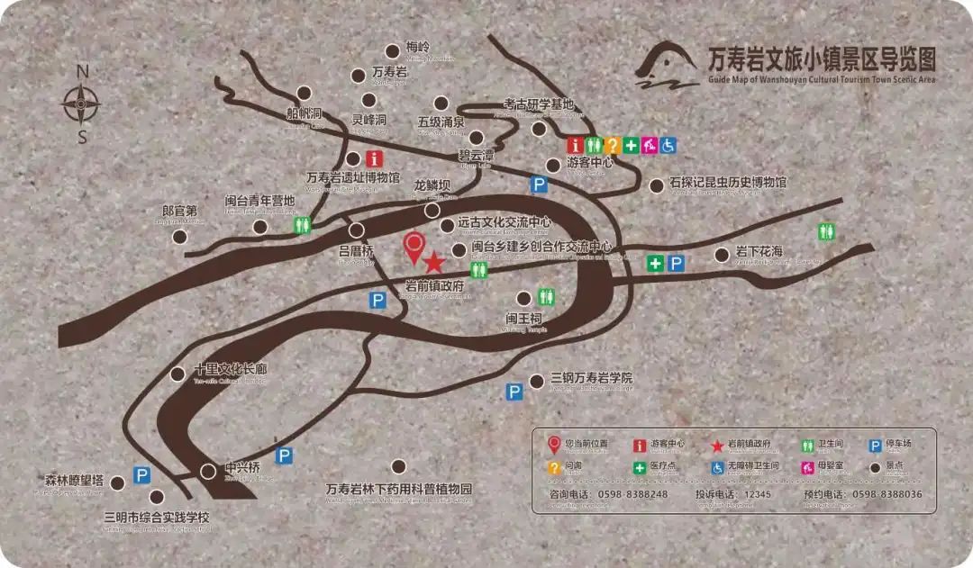 導覽圖標記了景區內各景點位置、當前所在位置、衛生間、停車場等重要點位,使得景區內配置分布一目了然。