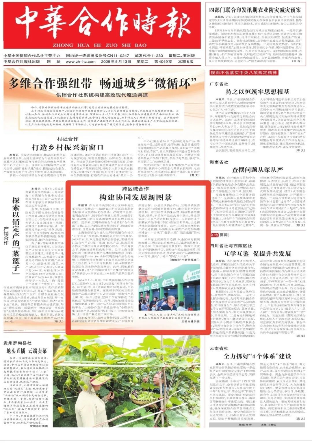 5月13日 《中華合作時報》頭版報道 三明市供銷社:跨區域合作 構建協同發展新圖景