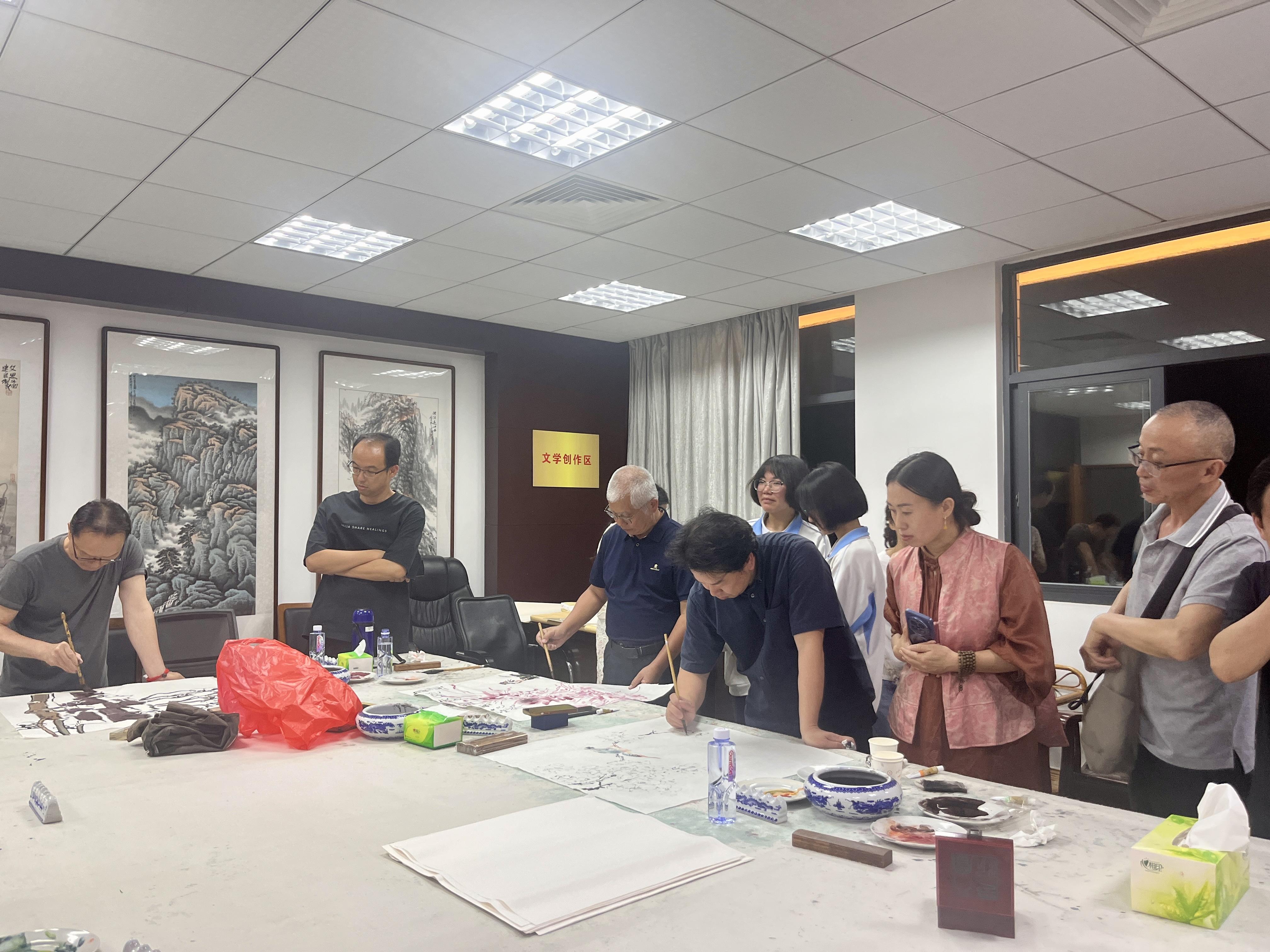 在筆會現場,畫家們齊聚一堂,揮毫潑墨。每一幅作品都流淌著畫家對三元理解與熱愛,濃淡干濕的筆觸間,三元的山川肌理、人文脈絡正以最鮮活的姿態躍然紙上,讓圍觀的學生們忍不住發出陣陣驚嘆。上海市美術家協會會員、上海市書法家協會會員、國家一級美術師、上海楊浦畫院畫師張越介紹:“我以三元區的古民居創作了這幅《山居圖》,三元區的古民居融合了山水生態與紅色記憶,非常具有特色。很感謝這次活動讓我來到三元區,這里山清水秀非常適合寫生,我希望以后能帶更多的上海畫家來到三元,加強兩地的交流和互動?!?/p>