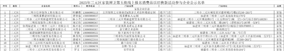 2025年三元區第五批線上報名消費品以舊換新活動參與企業公示