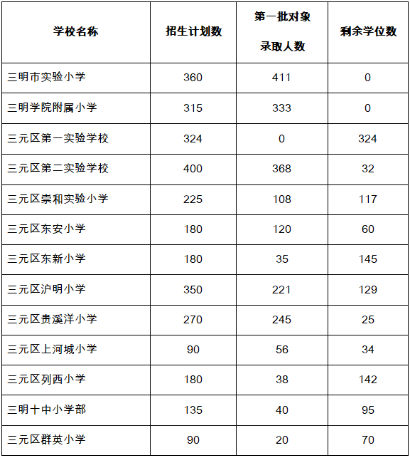 三元區北部2025年秋季小學第一批次招生第一次剩余學位公示及志愿填報須知 一、三元區北部城區小學第一批次招生第一次剩余學位公示