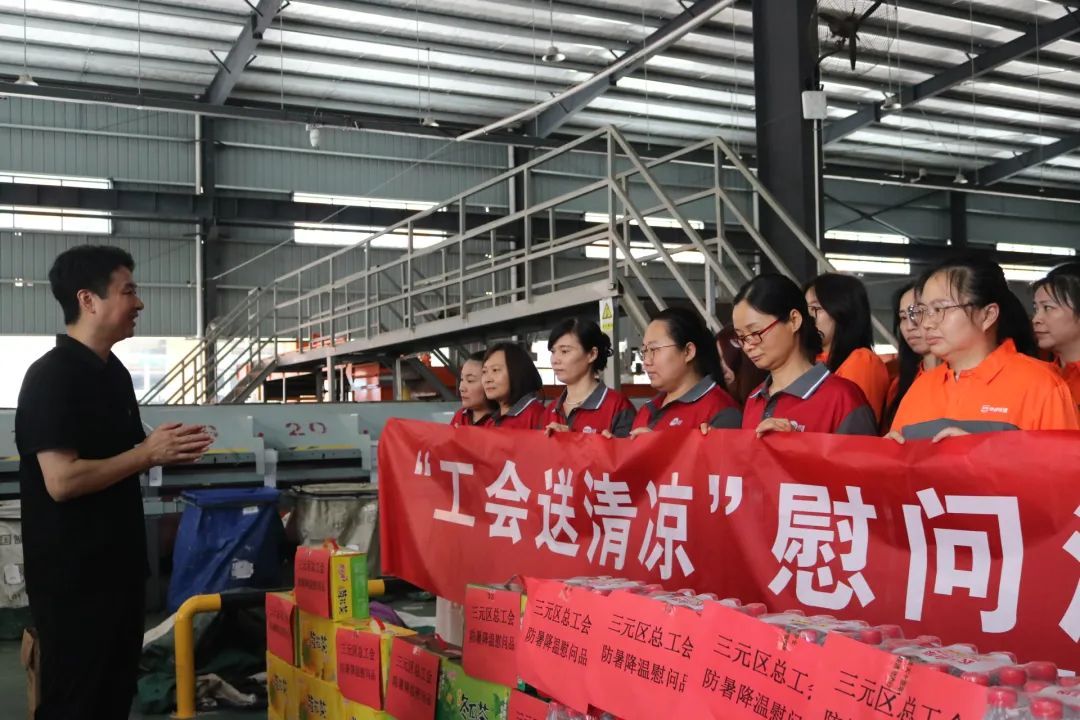 近日,三元區總工會全面啟動2025年夏季職工勞動保護和防暑降溫工作,開展“工會送清涼 ”慰問活動,督促企業工會合力做好高溫天氣下勞動安全保護工作,切實維護廣大職工在盛夏高溫季節的安全健康權益,把黨和政府及工會組織的關心關懷送到一線勞動者身邊。 慰問現場 慰問組先后走訪工會驛站、建筑工地、企業一線多地,慰問高溫作業職工,提醒廣大職工勞逸結合,堅持安全第一、生命第一,在做好本職工作的同時,注意高溫酷暑下的自我防護,特別是防范熱射病等職業性中暑事件發生。