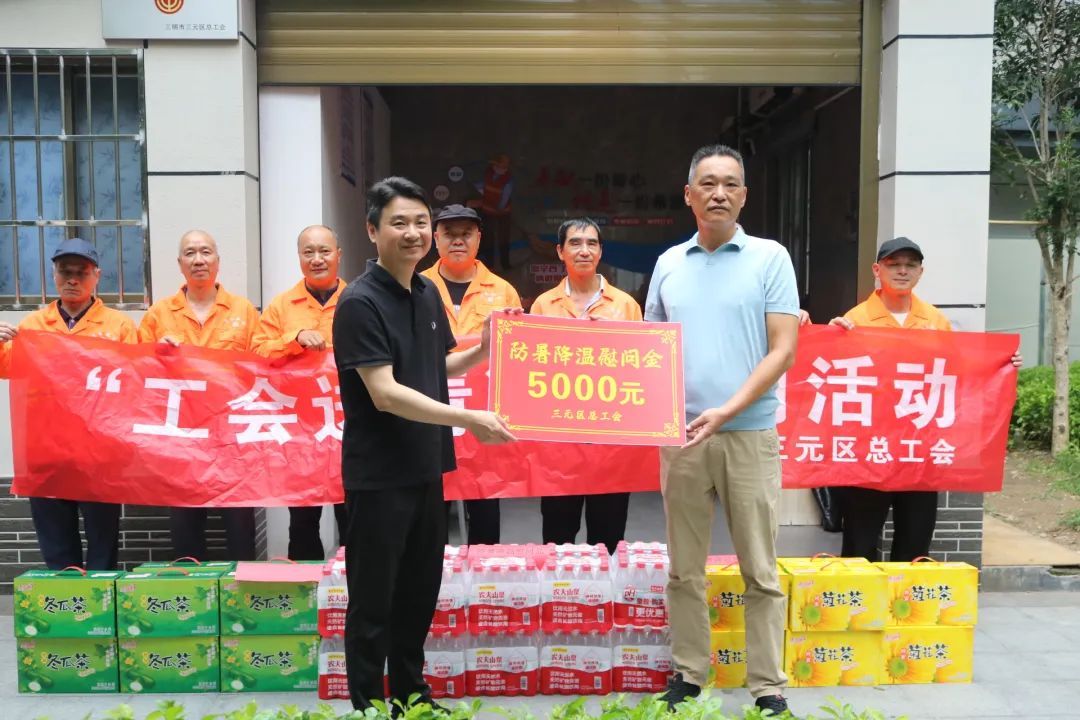 ▲豐潤化工慰問一線職工 今年,三元區總工會慰問重點項目建設工地一線職工、高溫作業車間一線職工和苦臟累險一線職工、新就業形態及戶外勞動者7000余人,為職工送上清涼慰問物資近15萬余元。同時,還及時向全區各用人單位發出“勞動法律監督提示函”,要求各用人單位要切實落實防暑降溫主體責任。 |