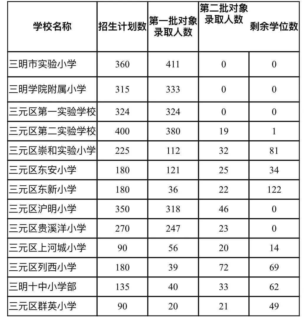 三元區北部2025年秋季小學招生第三次剩余學位公示及志愿填報須知一、三元區北部城區小學招生第三次剩余學位公示