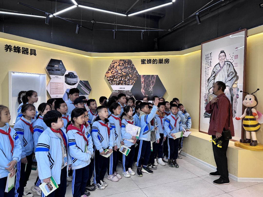 小蕉村的蜜蜂科普館是親子研學(xué)的絕佳去處,館內(nèi)通過(guò)圖文展示、實(shí)物標(biāo)本、互動(dòng)裝置等,全方位揭秘蜜蜂的世界。在這里,孩子們可以了解蜜蜂的生活習(xí)性,可以親手制作蜂蠟皂,也可以品嘗新鮮純正的蜂蜜。同時(shí)場(chǎng)館外還設(shè)置了30畝專業(yè)養(yǎng)蜂生態(tài)基地,孩子們還可以穿上防護(hù)衣跟隨老師來(lái)到養(yǎng)蜂場(chǎng)核心區(qū)域,近距離感受“小生靈”的大智慧。