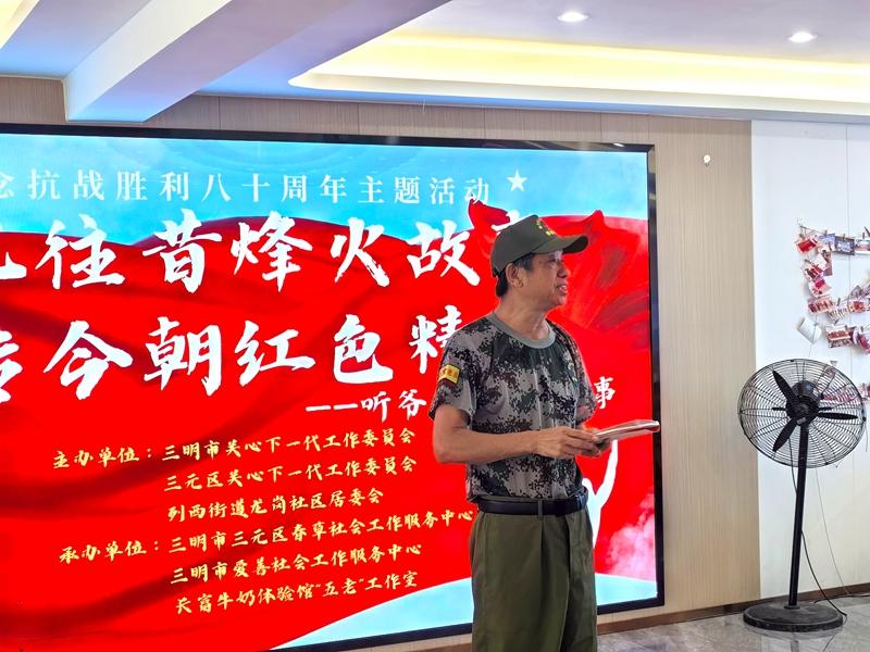 8月27日下午三元區關工委與三明市關工委、長富乳品有限公司三明分公司在列西街道龍崗社區共同舉辦紀念抗戰勝利80周年“憶往昔烽火故事、傳今朝紅色精神”主題教育活動。來自轄區的少先隊員、家長、退伍老兵、社會志愿者共計50多人參與。