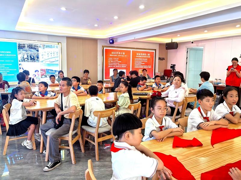 活動起始,三明長富乳品有限公司組織少先隊員與家長一起制作蛋撻。整個活動歡快熱烈,孩子們臉上洋溢著燦爛的笑容。此時主持人話風一轉深情地說道:同學們,我們生活在社會主義新時代是多么的幸福啊,但是大家千萬記住,今天的幸福生活是革命先輩用生命和鮮血換來的。今年是抗日戰爭勝利80周年,為銘記歷史,我們特邀退役老兵、五老工作者劉敏爺爺為大家講述抗戰故事。