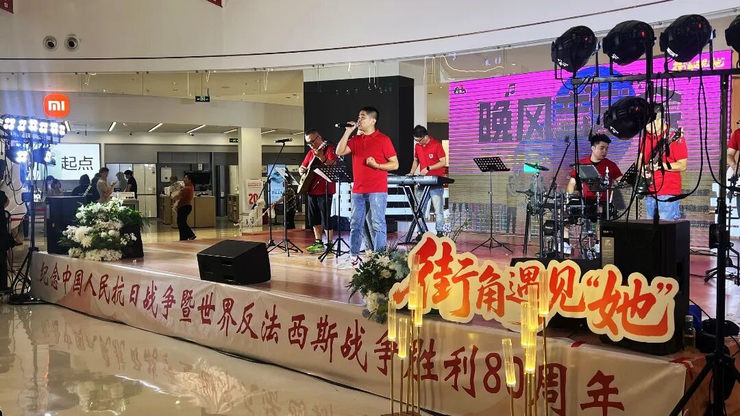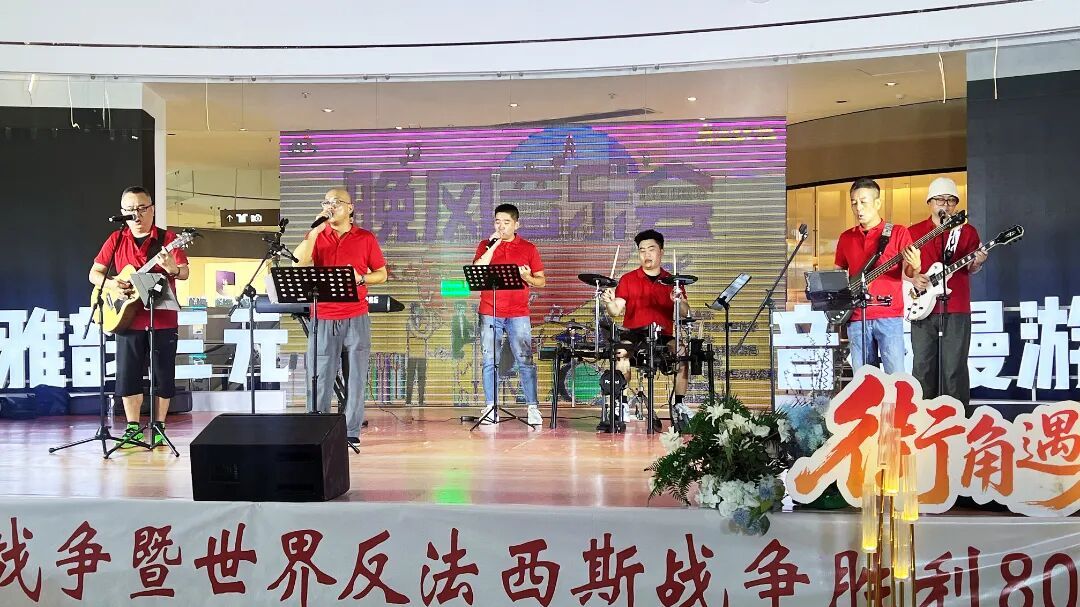 本次音樂會以“銘記勝利,致敬山河”為主題,特邀本土知名音樂團體沖動樂團,精心挑選廣大群眾耳熟能詳的愛國經典曲目激情演繹。《紅旗飄飄》《我和我的祖國》《映山紅》《我的祖國》《我的中國心》等愛國歌曲,喚起大眾對祖國的深厚情感和對崢嶸歲月的深刻記憶;《卡秋莎》《啊!朋友再見》《紅河谷》等世界反法西斯戰爭相關曲目傳遞著和平與正義的呼聲;《燈火里的中國》《我要你》則兼具時代感與感染力,滿足不同年齡段觀眾的審美需求。音樂表演創意地融入現代編曲手法,巧妙結合了紅色歷史與浪漫的晚風場景,兼顧老輩情懷與年輕群體審美,讓觀眾在室內環境中沉浸式感受音樂魅力。當紅色旋律在晚風中共鳴,紅色精神傳承與時代文化體驗實現了完美結合。