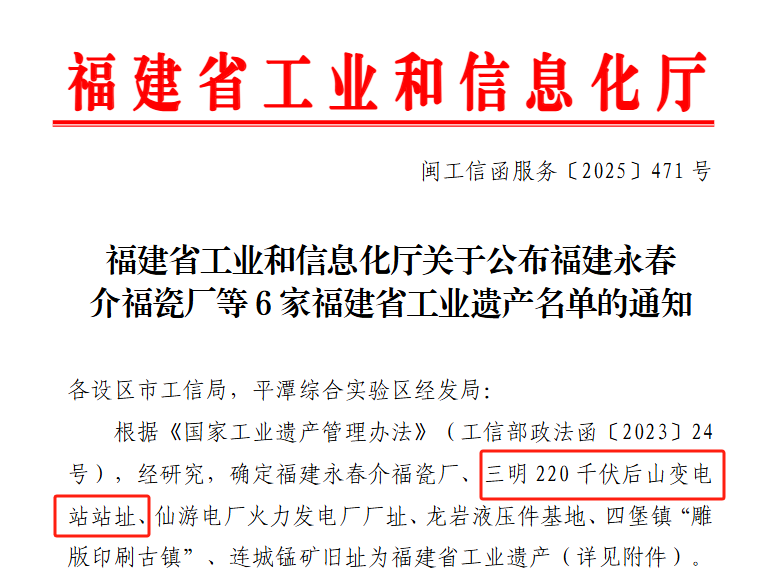 近日,福建省工業(yè)和信息化廳公布了新一批省級(jí)工業(yè)遺產(chǎn)名單,三明220千伏后山變電站站址位列其中。繼三鋼集團(tuán)的三明鋼鐵廠工業(yè)遺產(chǎn)項(xiàng)目后,三元區(qū)已包攬全市目前僅有的2處省級(jí)工業(yè)遺產(chǎn)項(xiàng)目,體現(xiàn)了三元區(qū)推動(dòng)制造業(yè)與服務(wù)業(yè)深度融合的探索與成效,為推進(jìn)共同富裕提供了持久的內(nèi)生動(dòng)力。