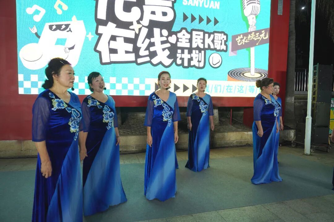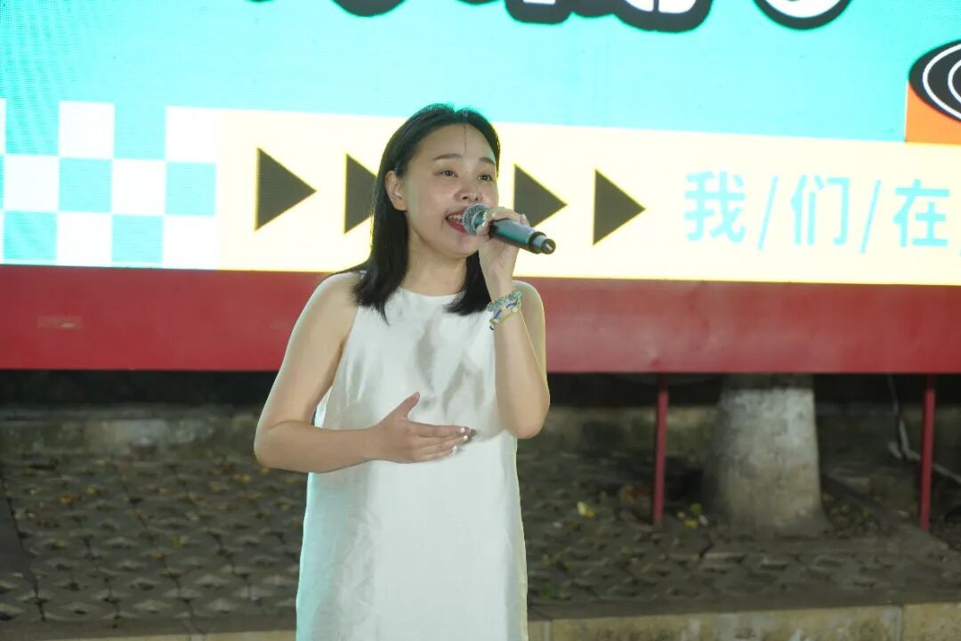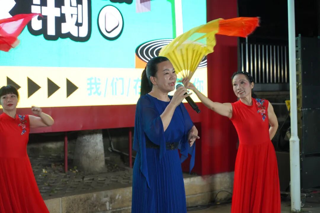 隨著主持人清亮的聲音響起,活動正式拉開帷幕。首位登場的歌手帶來一曲《(U) 你》,溫柔的嗓音瞬間拉近與觀眾的距離。《年輕的朋友來相會》勾起了在場中老年觀眾的青春記憶。臺下 62 歲的秦衛國跟著節拍輕輕拍手,眼角帶著笑意:“這歌我年輕時經常唱,沒想到今天又聽見了,就像遇見了老熟人!”當《我和我的祖國》響起,現場氛圍達到高潮。臺下觀眾不自覺地齊聲合唱,聲音越聚越響,回蕩在社區的夜空。《印象三元》更是讓現場觀眾倍感親切,“這是我們三元自己的歌!” 臺下有人高聲贊嘆,掌聲與歡呼聲久久不息。