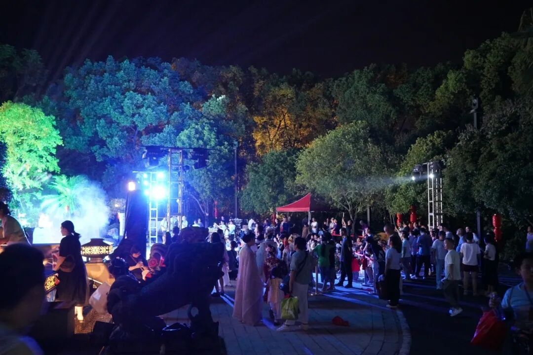 活動在一陣市民群眾的喝彩聲中拉開帷幕。開場表演《麒麟舞韻》,將傳統舞蹈文化與本土“麒麟”傳說結合,相得益彰。《春江花月夜》等經典詩詞搭配古箏演奏藝術,營造古今雙節承文脈的唯美意境。《木蘭花慢?中秋飲酒》融朗誦與太極于一體,剛柔并濟間傳遞出古人對中秋團圓的期盼。漢唐舞《流芳》《望月懷遠》等以典雅的舞姿還原古代禮儀文化,展現中華傳統文化的源遠流長...... 本次詩會以“月”為線,巧設“山銜好月送吉祥”“朱閣流光月正圓”“清輝流韻滿人間”三篇章,綜合運用多種表現形式,展現三元特色文化。當晚,麒麟山廣場摩肩接踵、游人如織。市民游客或攜家人、或邀摯友,共享這難忘的詩歌佳節之夜。