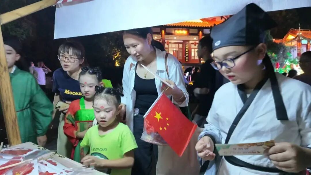 “這次能在麒麟閣聽詩詞、看舞蹈,還親手做了非遺花燈作品,孩子感受到了傳統文化的美。”帶女兒參加活動的市民陳女士心情愉悅。除了精彩的詩會表演,活動現場還設置了“非遺游園”互動環節。市民們紛紛親自動手,制作一枚帶著中秋氣息的香囊,打造專屬自己的非遺花燈,親手浸制一把漆扇,制作出獨特的宋錦風鈴,讓傳統非遺文化穿越時光,傳遞中秋的美好祝福。
